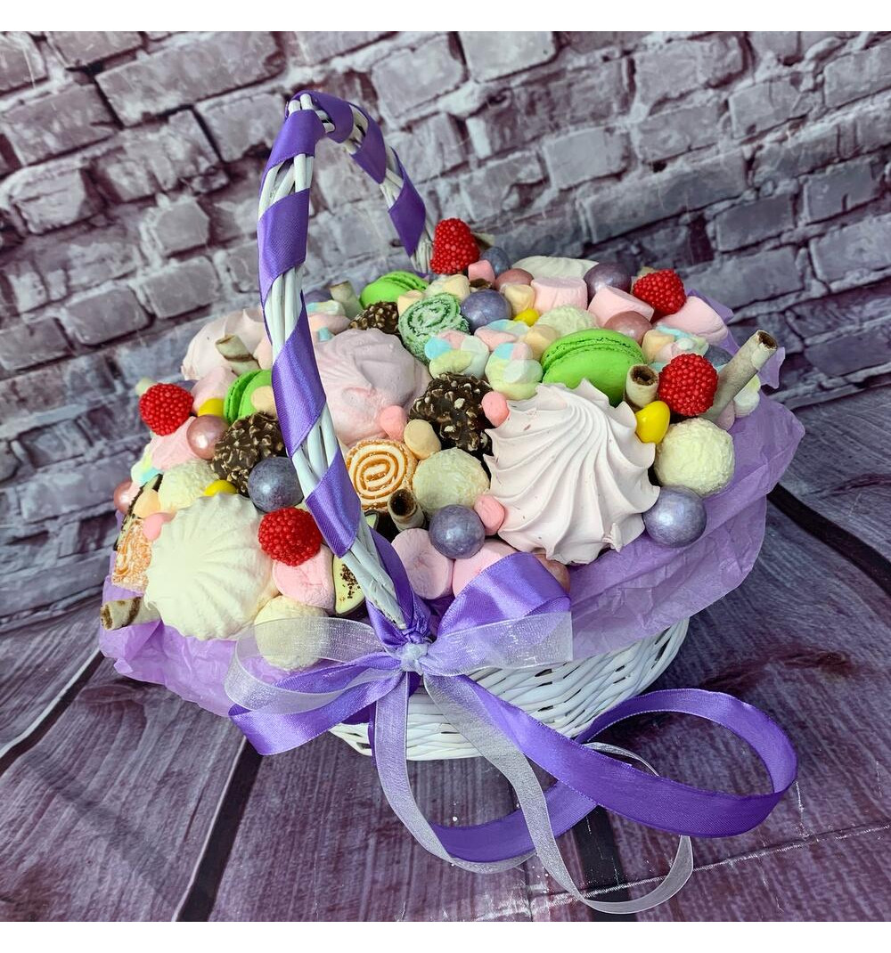 Корзина со сладостями - это изысканный подарок, который собрал в себе самые вкусные и нежные лакомства. В этой прекрасно украшенной плетеной корзине вы найдете разнообразные сладости: вкусные конфеты, нежный зефир, аппетитный макарон, ароматный лукум, восхитительный мармелад и пышный маршмеллоу. Этот набор сладостей порадует вас и ваших близких, создавая настоящую атмосферу праздника и радости. Подарите эту корзину со сладостями на любой праздник, и ваш подарок будет приятным и незабываемым!
